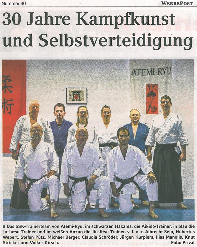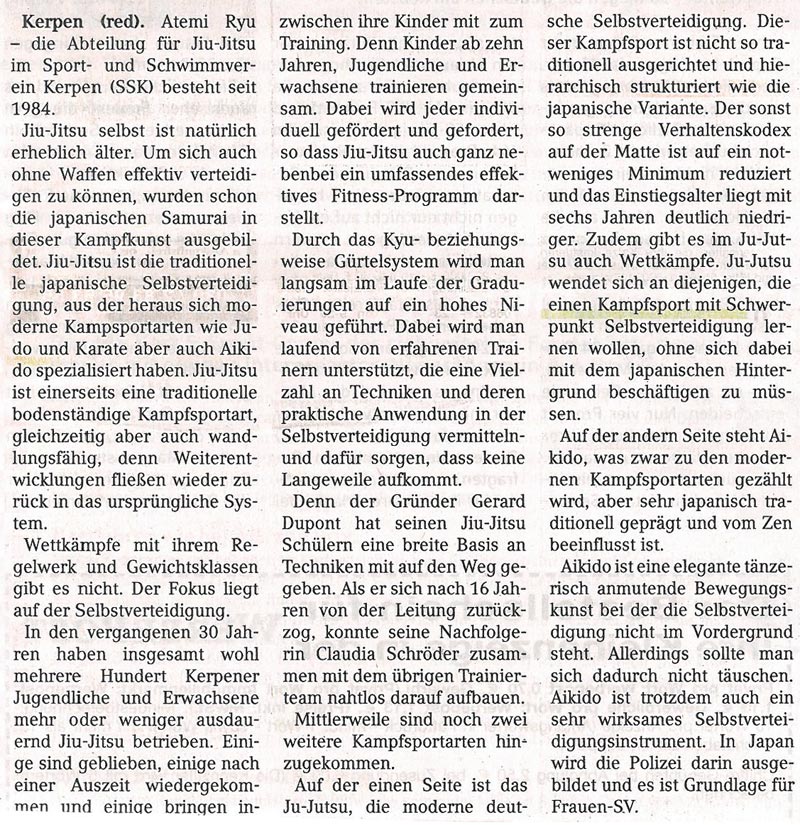 Presseartikel für das 30-jährige Jubiläum des SSK Kerpen Jiu-Jitsu.
