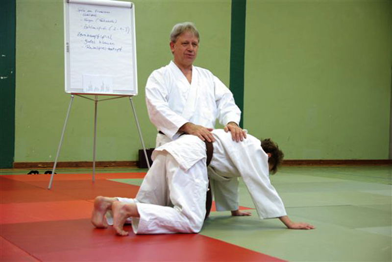 bei beinahe jeder Art von Angriff. Dazu bediente sich der Referent den Prinzipien aus dem Judo, Karate und Aikido.