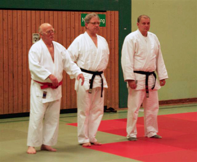 In der letzten Einheit trat Karl Heinz Heidtmann auf die Matte und begann mit dem Aufbau von Falltechniken im Anfängerbereich